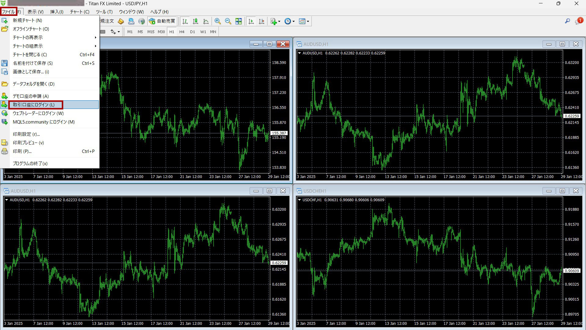 ①デスクトップのTitanFX<タイタンFX>のアイコンをクリック!