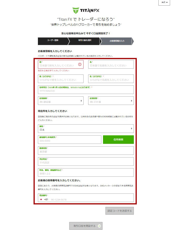 ③お名前、ふりがな、雇用形態、住所、電話番号を入力します。