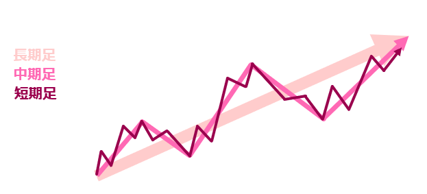| スイング | 数日~数週間 | 週足・日足 | 4時間・1時間足 |