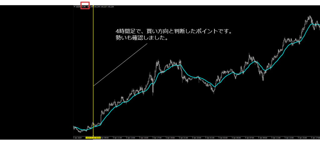 上位足で勢いを確認できれば、エントリー足で「押し目や戻り目」を狙います。