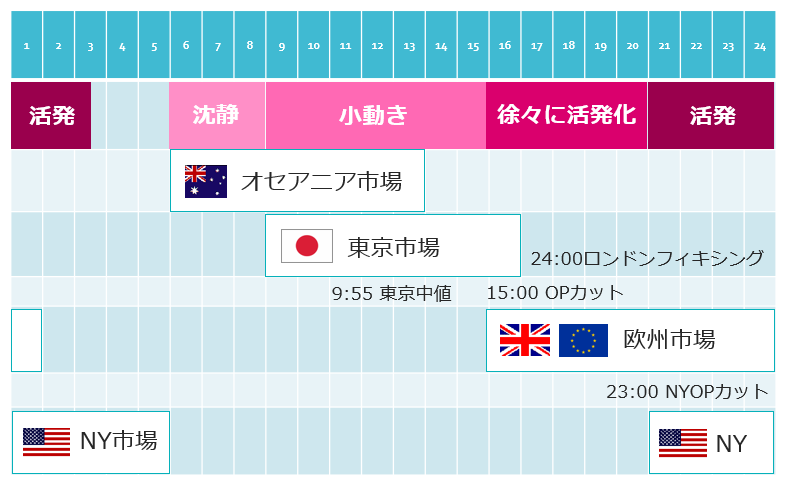 24時間取引きはできるものの、時間帯の特徴はさまざまです。