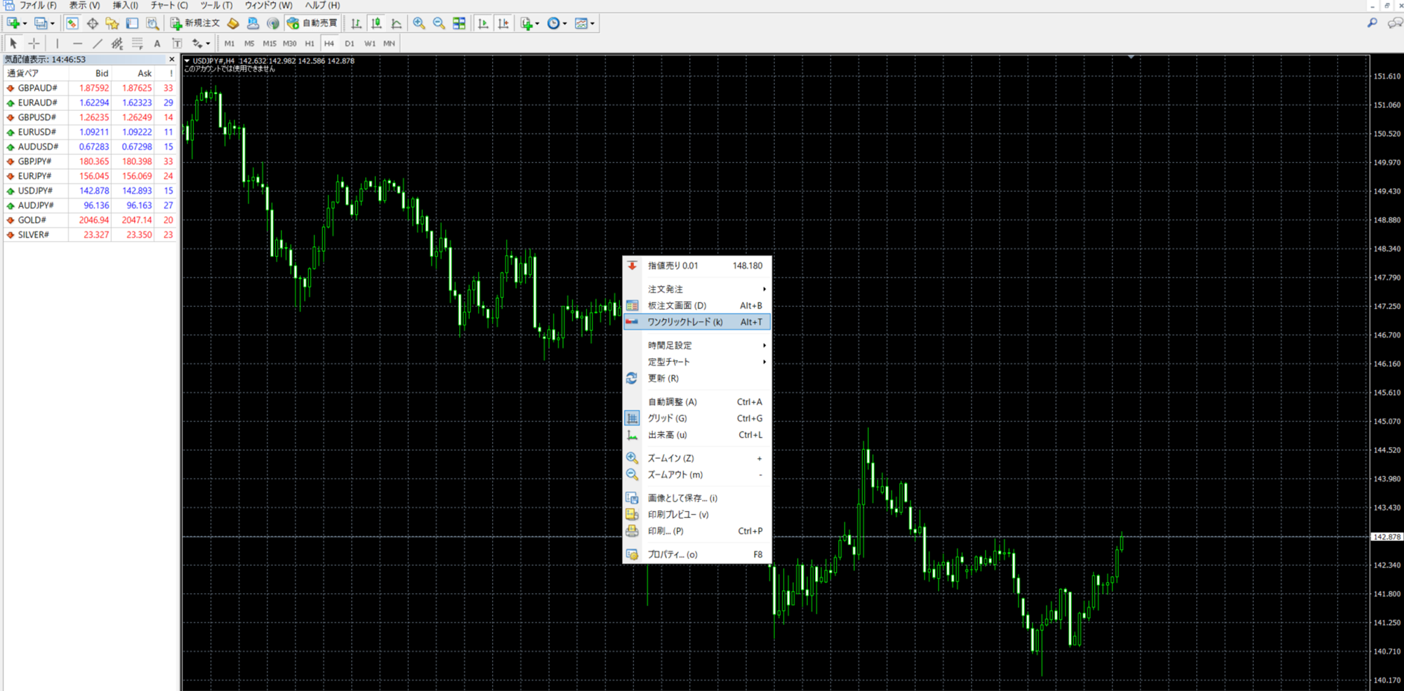 ワンクリックトレードでエントリー